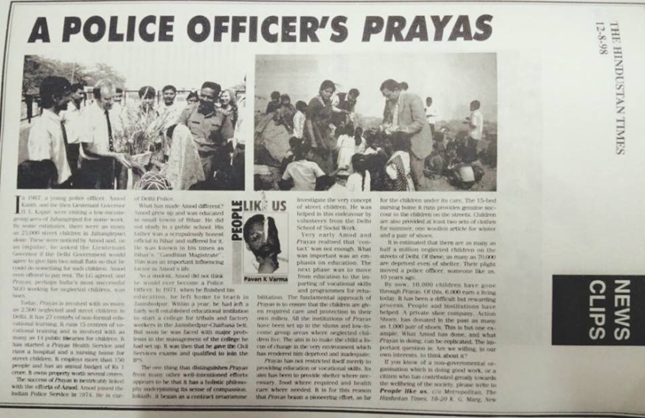 Mr. Amod K. Kanth established Prayas JAC Society, an organization of international acclaim, envisioned to restore the lost childhood of “Children in Need of Care and Protection” and Juveniles/Children  in conflict with law.